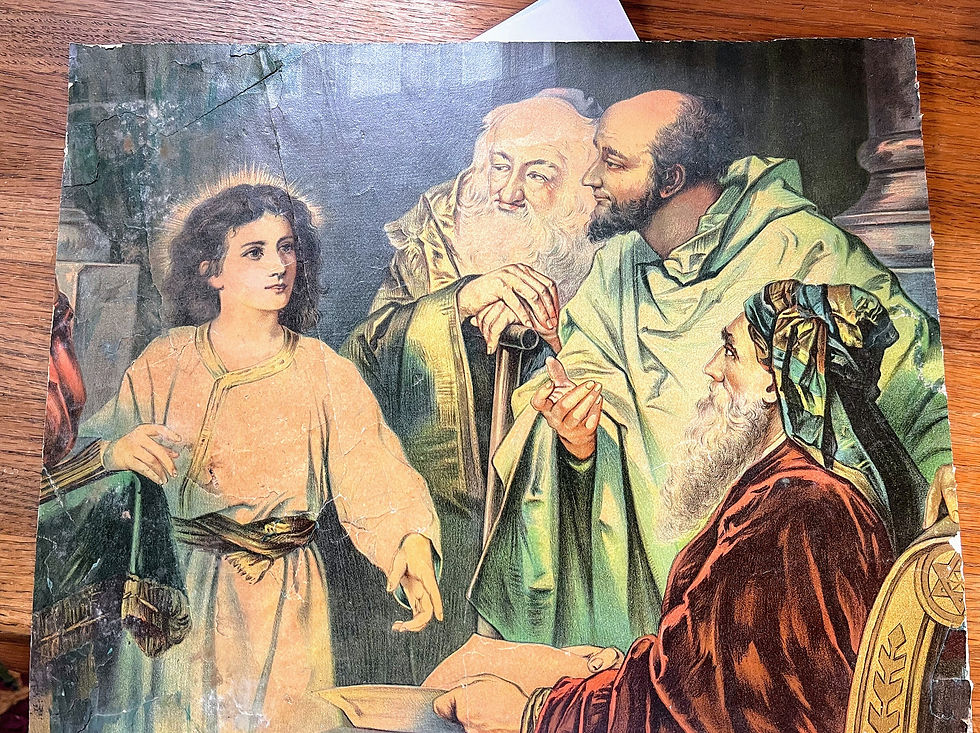 Vintage painting of child ,god, and angles