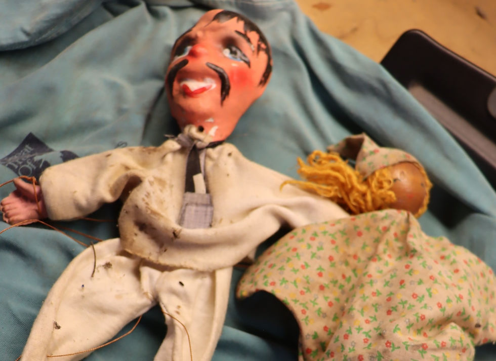 Vintage group of toys: Gun,bull dozer by Tootsie toys,tractor, cowboy,wood block